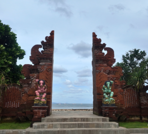 The entrance to Sanur Beach has a beautiful red-bricked gate with colourful elephant statues. The area is full of traditional and cultural statues and structures – this gate is just one of them.