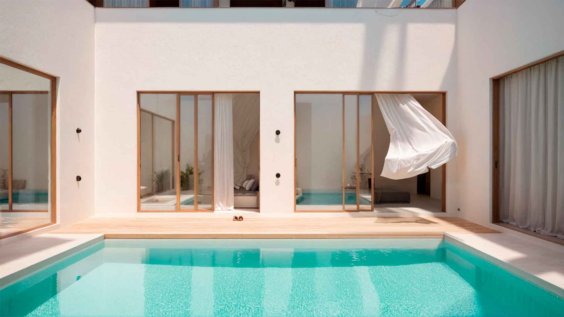 The villa’s contemporary Asian design combines natural materials, elegant furnishings, and soft tropical tones to create a calm and sophisticated environment.