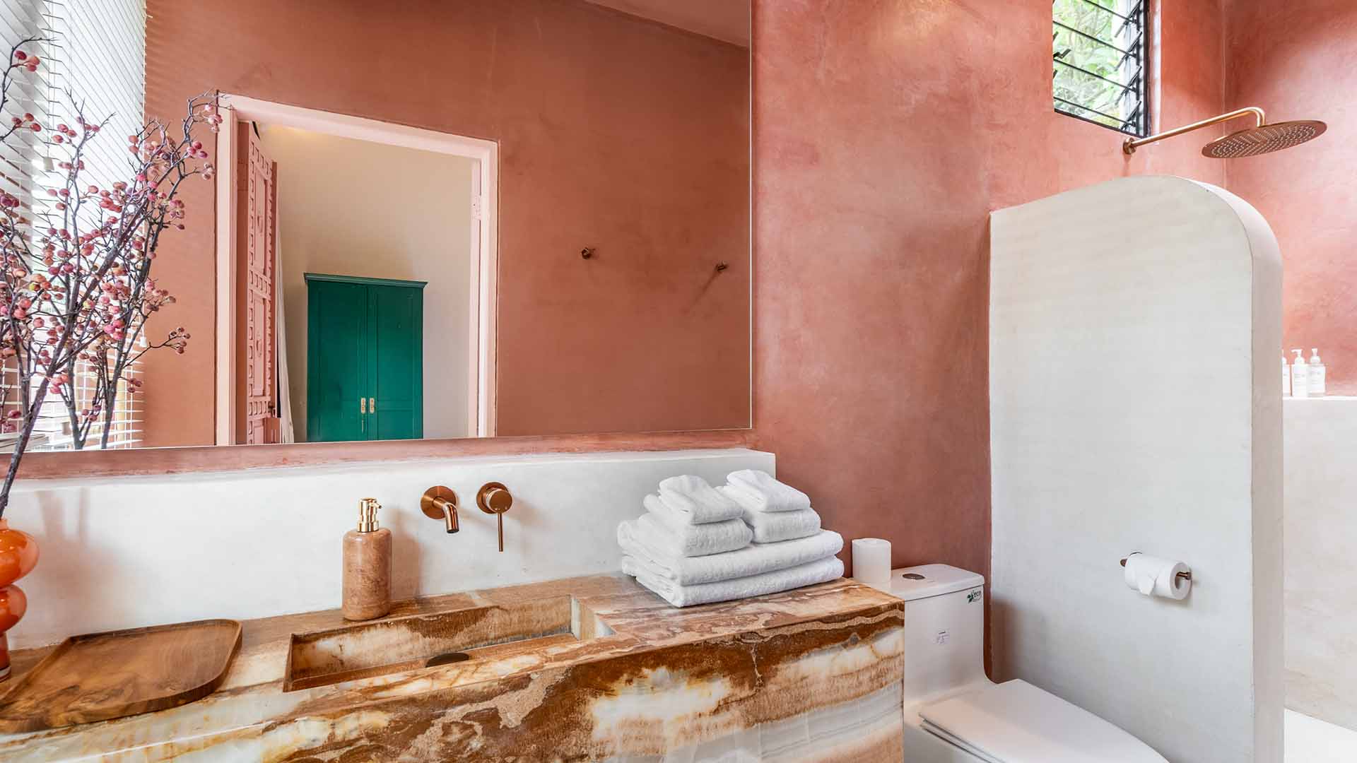 Step outside to your idyllic tropical garden, an inviting space perfect for afternoon cocktails, lounging, or private relaxation under the palms.