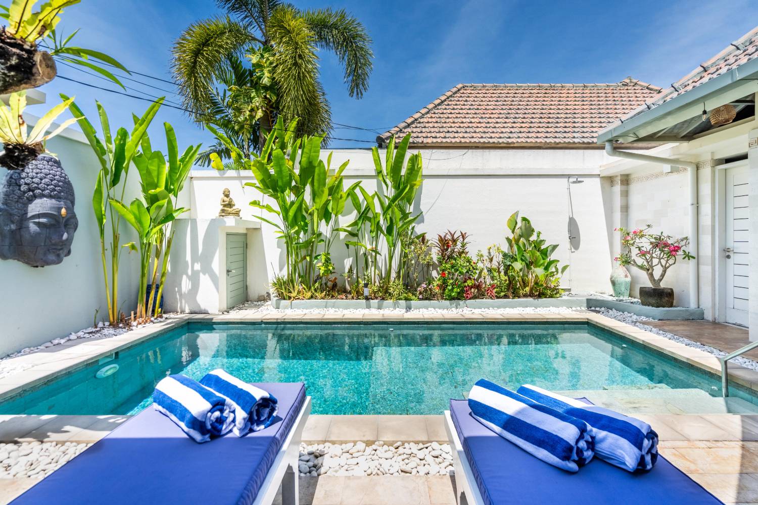 Sun loungers provide the perfect place to relax in the Bali sunshine, while a shaded poolside bale offers a cool retreat for reading, relaxing, or enjoying a cocktail.