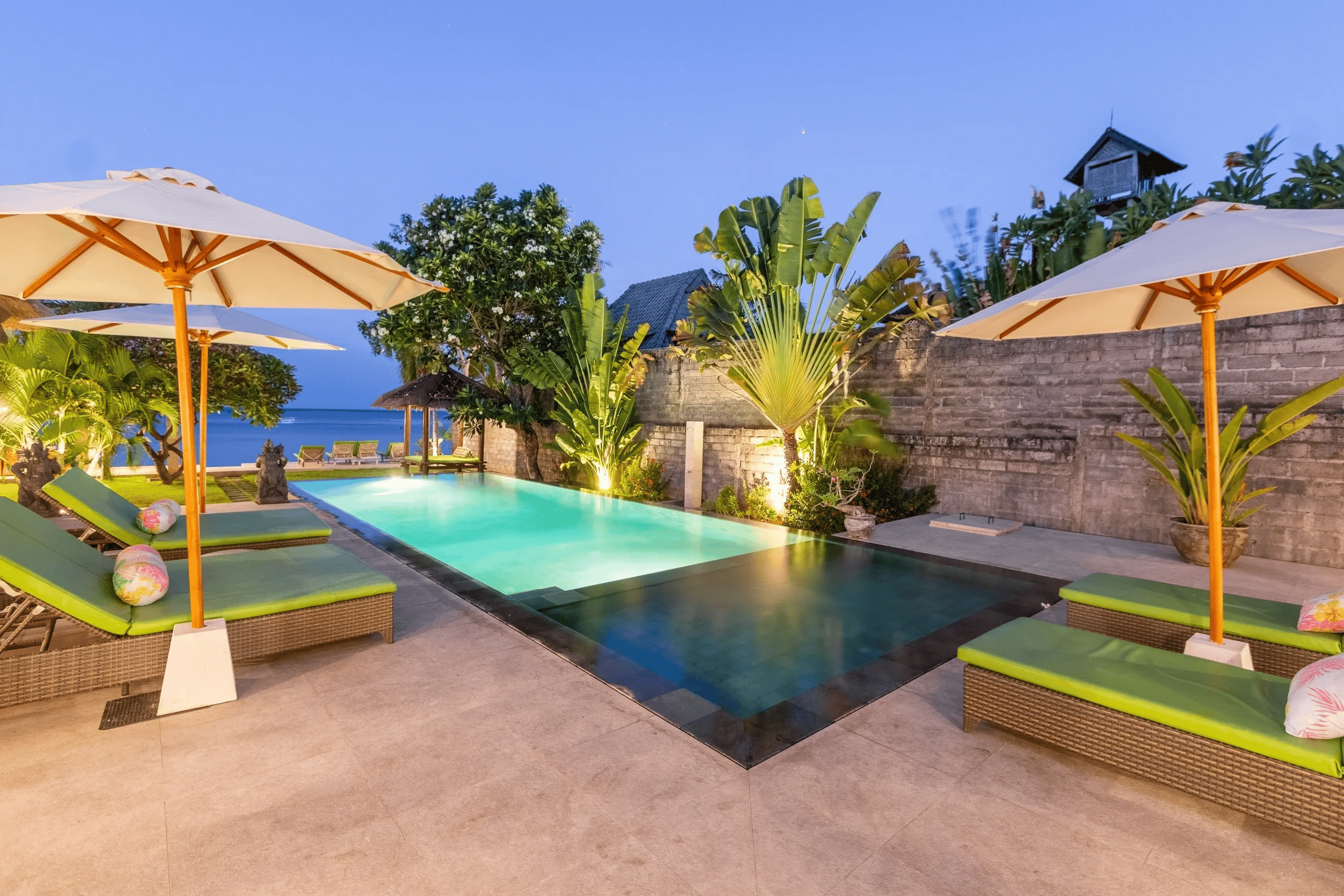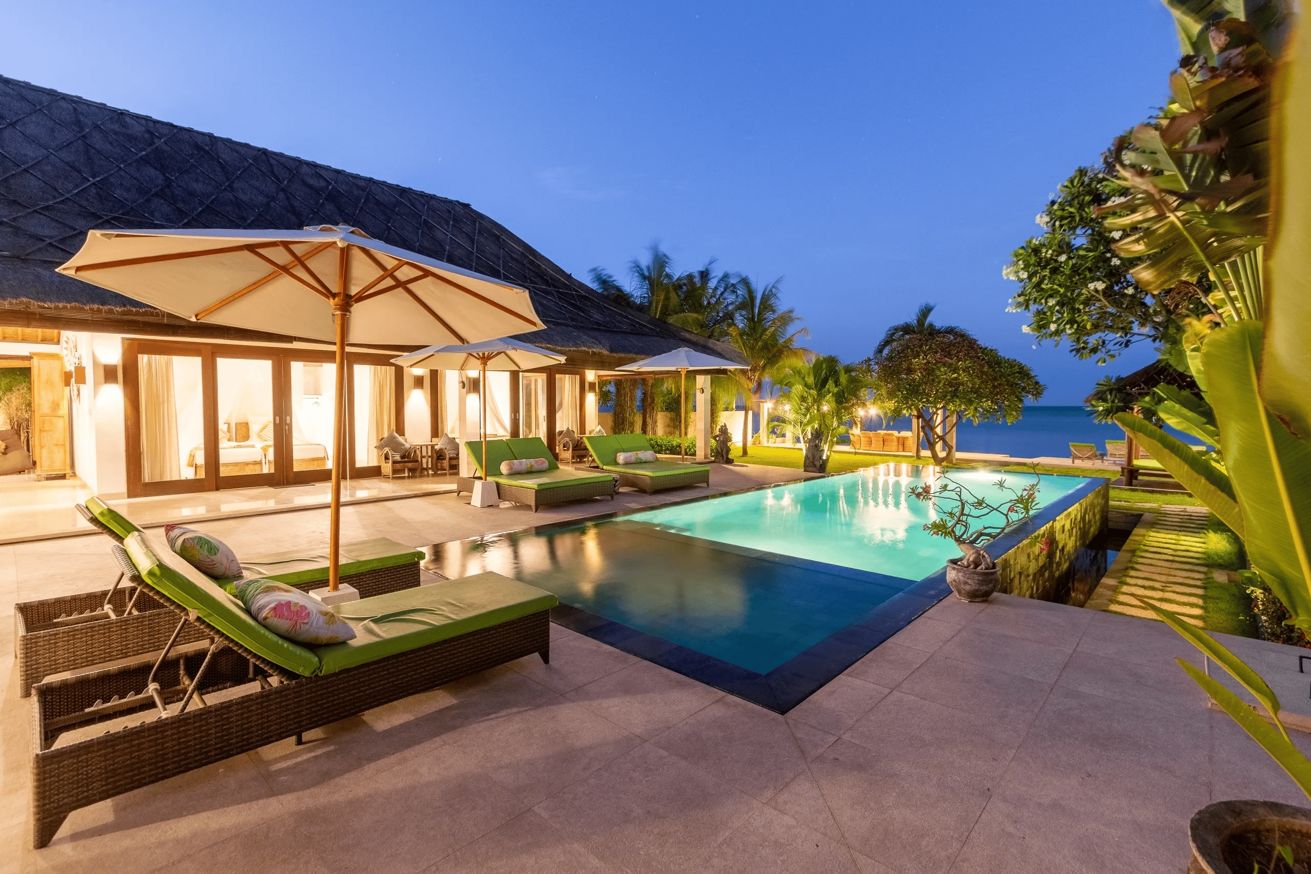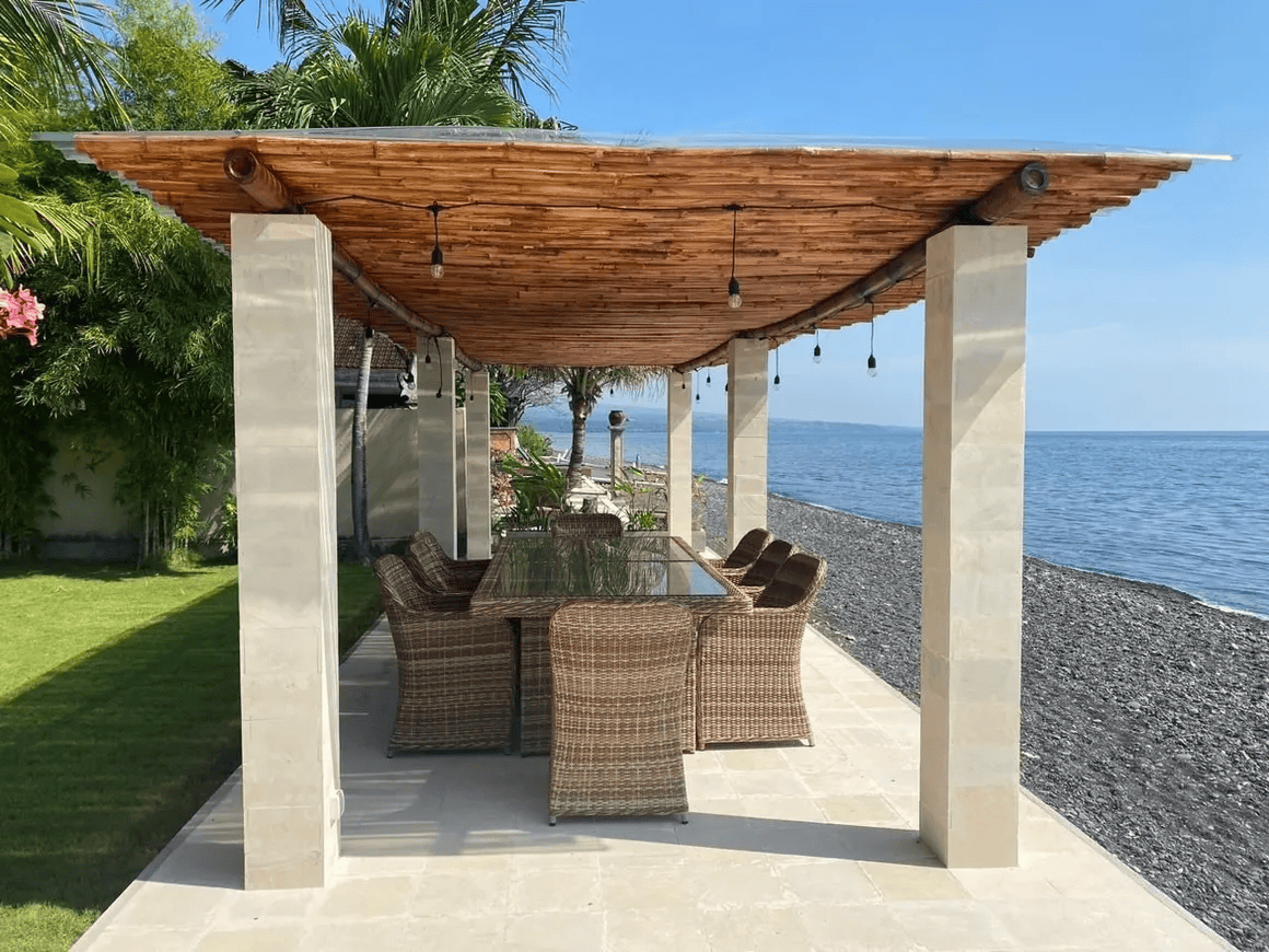 A gorgeous beachfront villa created for peaceful and relaxing living. Settled at the edge of the Bali Sea in Amed and featuring the unique architecture of modern Balinese style. This tropical retreat offers 4 stunning oceanfront bedrooms. Due to its unique location, the villa enjoys unlimited sunrises all year round.