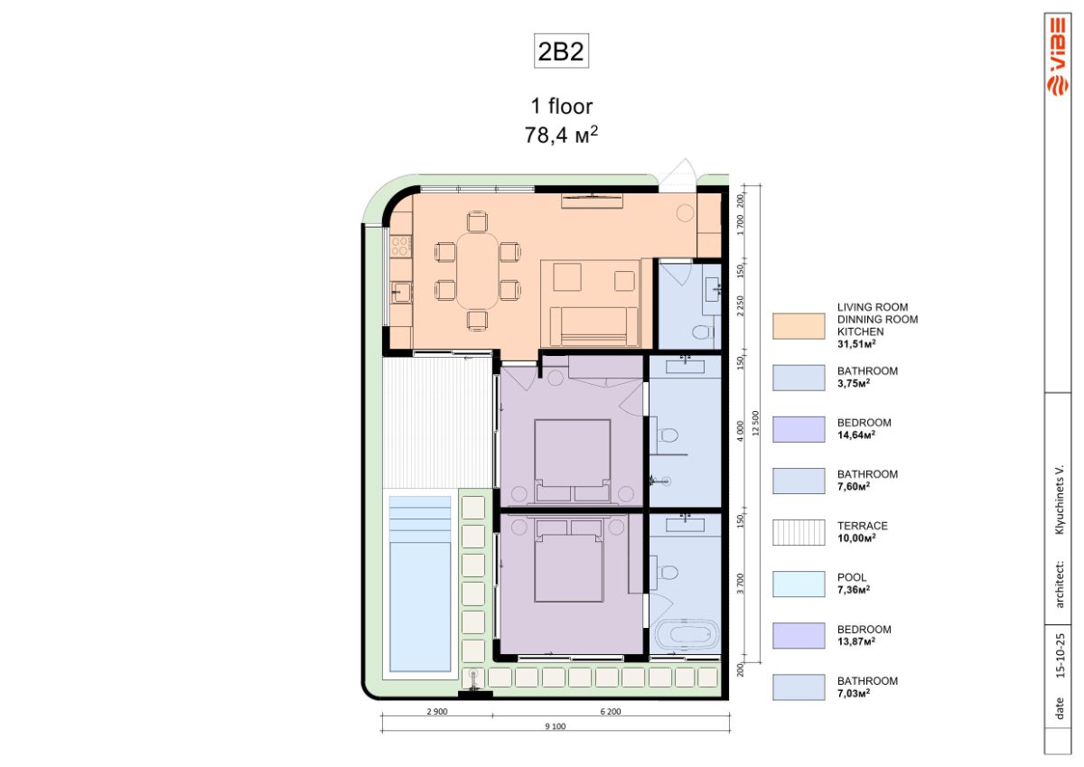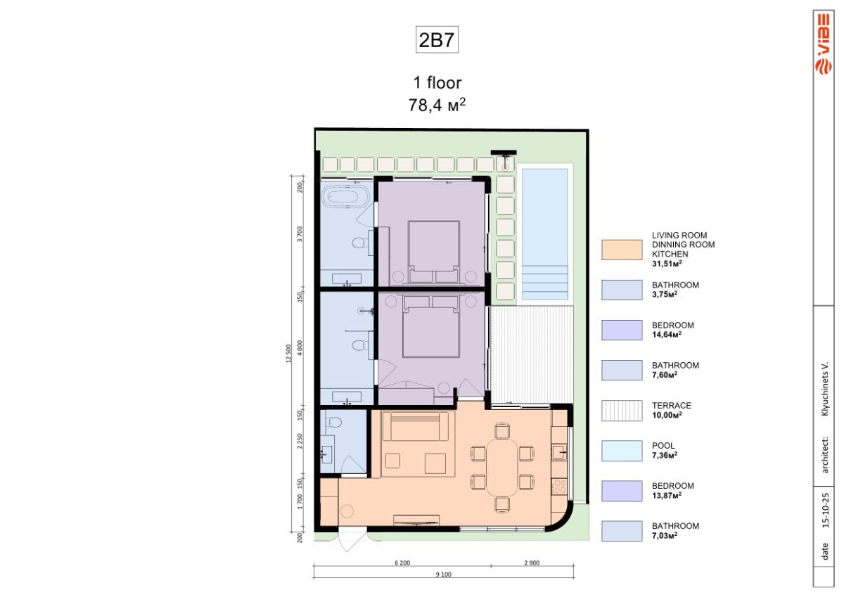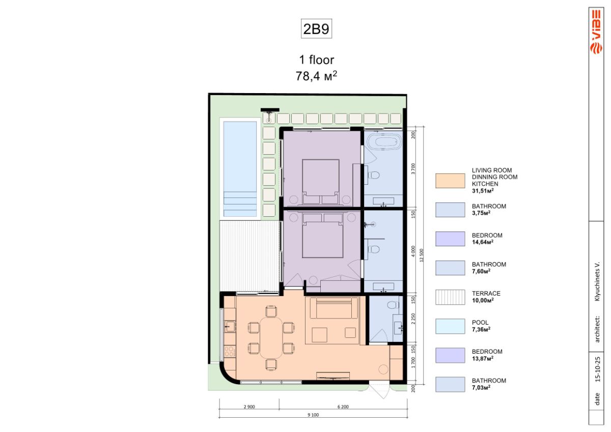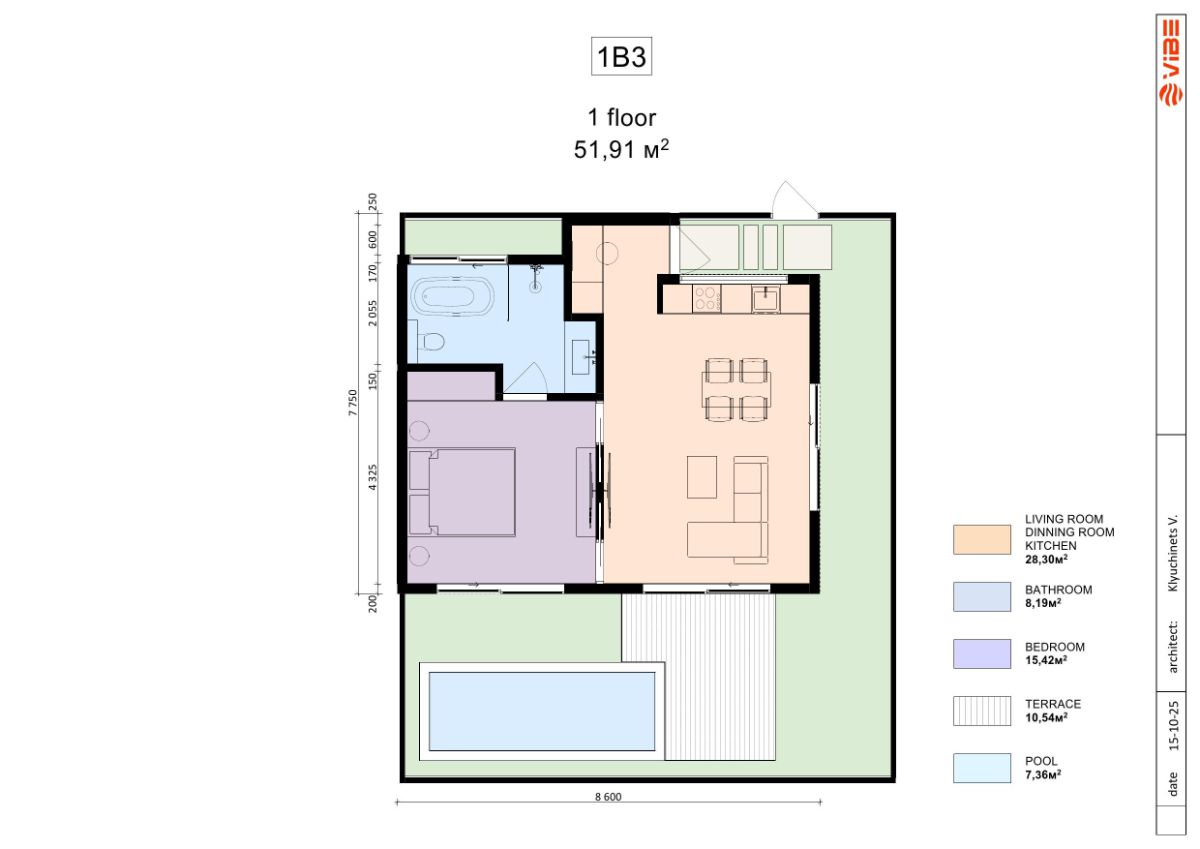 | 1 unit | One-Bedroom + Office | 149,5 m2 | 69,35 m2 | $165,000 |