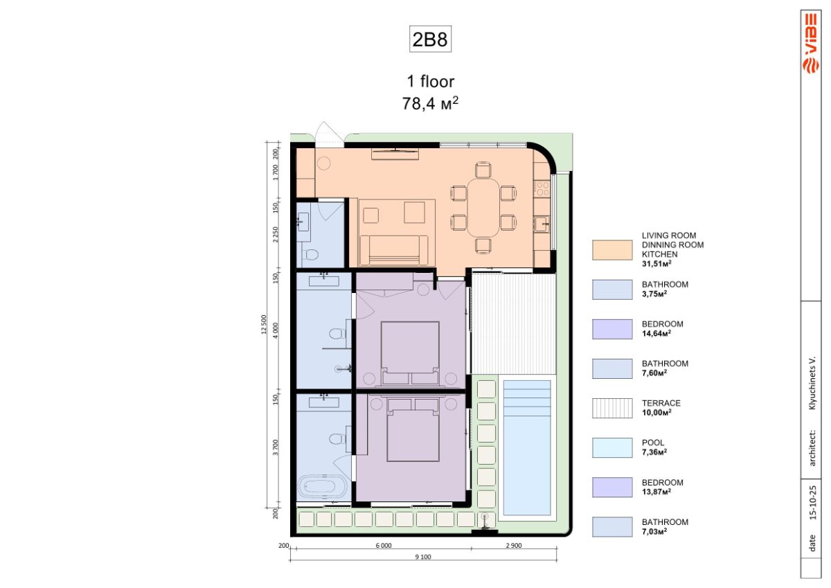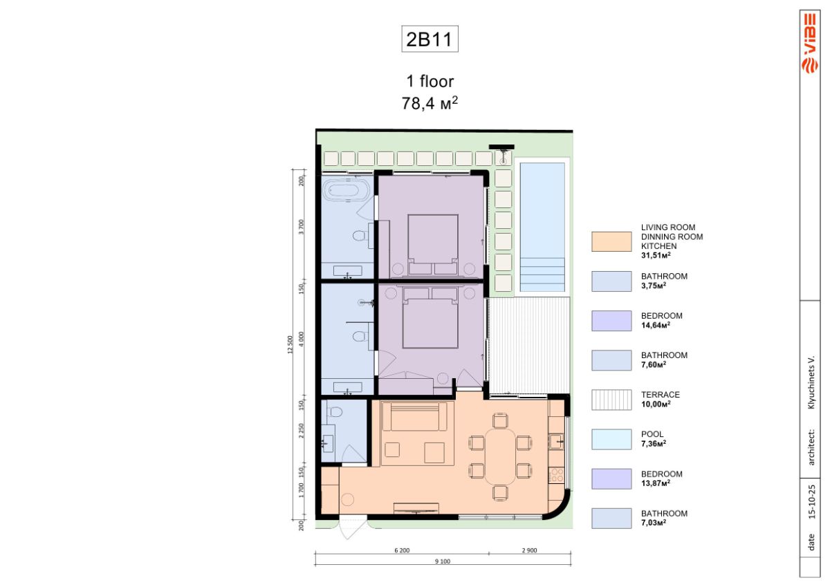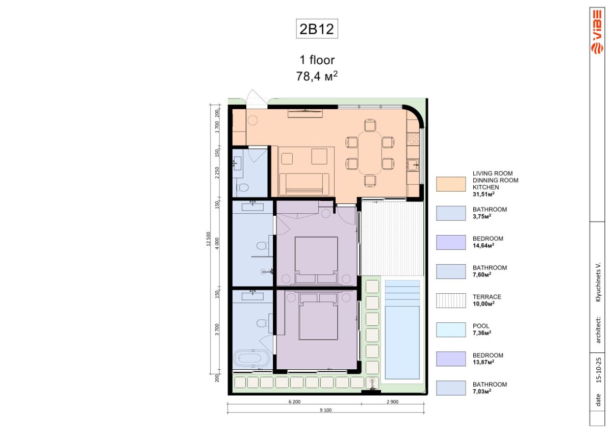 | 12 units | Two-Bedroom | 112,74 m2 | 78,36 m2 | $185,000 |