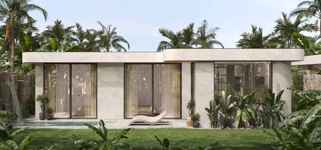 The villa’s contemporary Asian design combines natural materials, elegant furnishings, and soft tropical tones to create a calm and sophisticated environment.